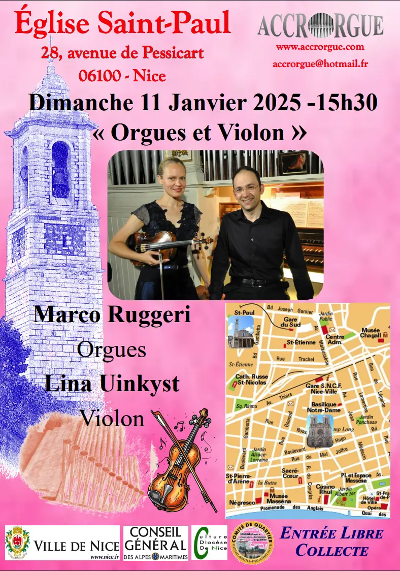 Accrorgue offers you an Organ and Violin concert with Marco Ruggeri on the Organ and Lina Uinkyst on the Violin.