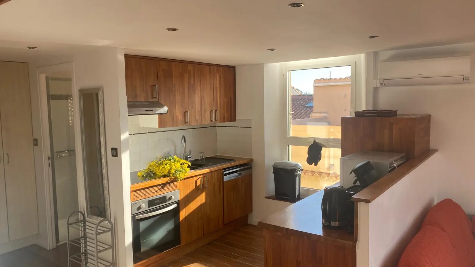 In the heart of the village, charming 62m² apartment on 2nd floor with sea view.