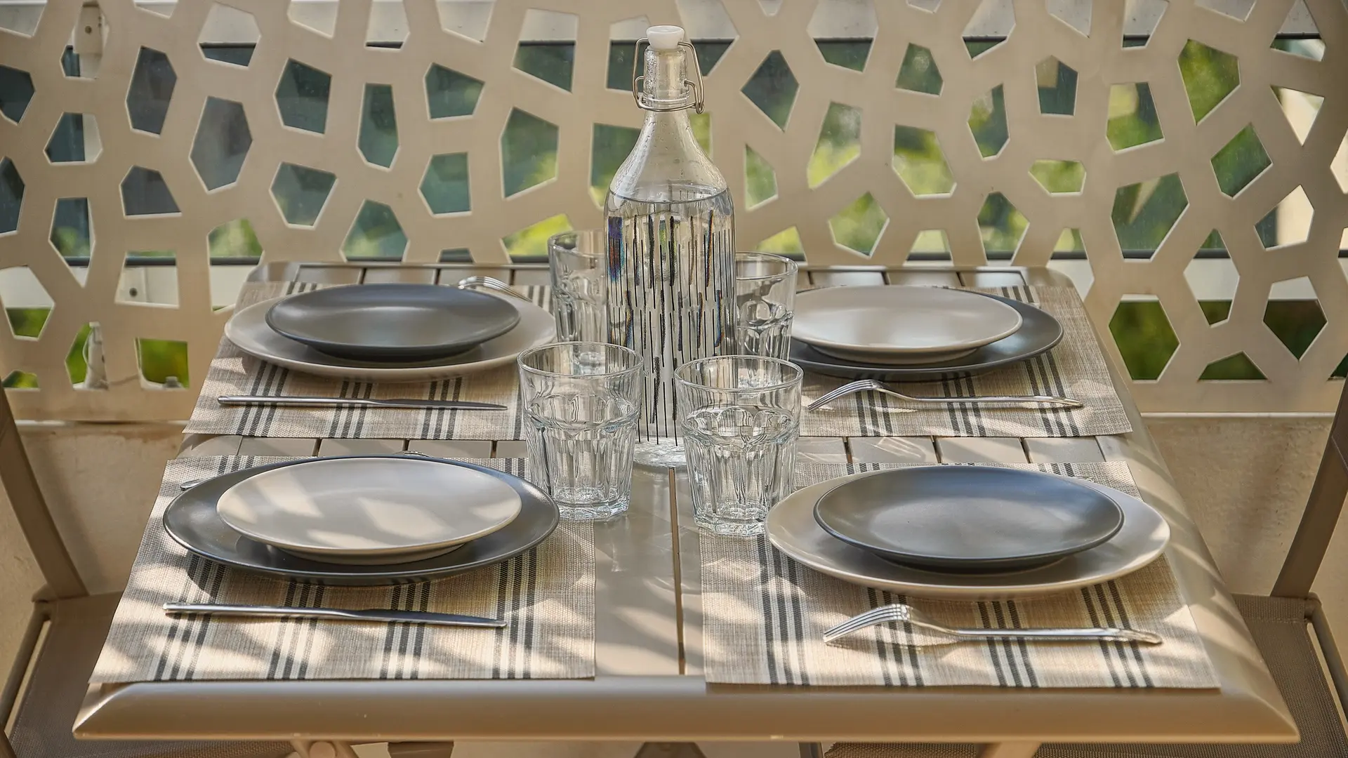 The spacious and bright living room opens onto the kitchen and leads to the beautiful 11 sqm balcony facing southeast, offering an unobstructed view of the city. There is a seating area and a dining table for four on the balcony.