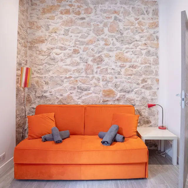 Brand new studio with bathroom, the living room with a very comfortable sofa bed.