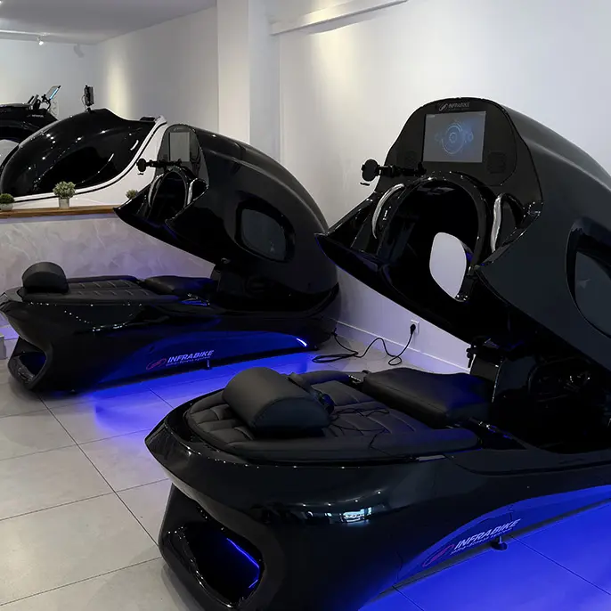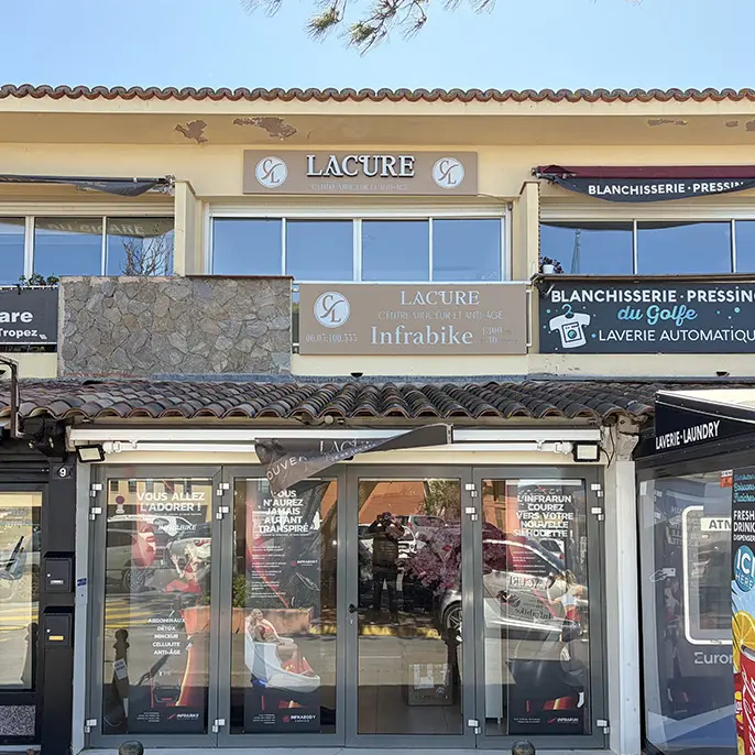 Our concept is based on the use of innovative infrared technologies (INFRABIKE, INFRARUN, INFRABODY CAPSULE, INFRARED PRESSOTHERAPY) to burn up to 1300 kcal in just 30 minutes, offering a powerful solution for weight loss and figure enhancement. LACURE also incorporates a brand-new robot massager with artificial intelligence, capable of reproducing advanced massage techniques with precision and consistency, to optimize results and enhance the sensation of well-being. Our protocols combine human expertise and state-of-the-art equipment to maximize the effectiveness of treatments, whether for slimming, drainage, firming or remodeling. In an elegant, soothing environment, LACURE offers a premium experience where well-being, technology and performance meet. More than a slimming center, it's a true place of lasting transformation, inspired by the high standards and art of living of Saint-Tropez.