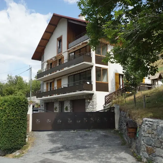 Gîte located on the 1st floor of the owner's beautiful chalet : Living room with 2 single pull-out beds (90x190), equipped kitchen area opening onto a covered balcony. 1 bedroom with 1 double bed (140x190). Shower room with toilet. Shared enclosed land (1000 m²). Car park. Electric heating. Charges included. Tourist tax extra.