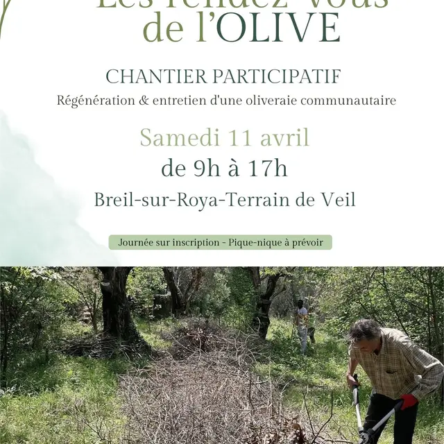 Join us for a wonderful day in the beautiful olive grove at Veil in Breil-sur-Roya , co-organised by Les Week Ends Solidaires, Maison du Vivant and the Curieux de Nature association.