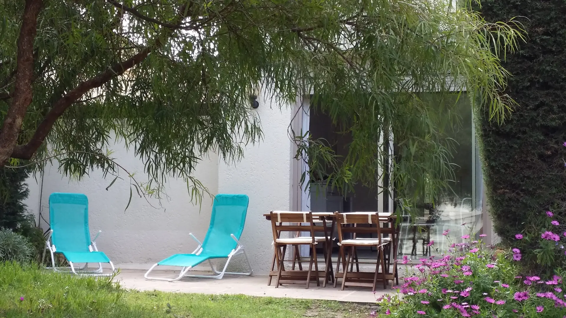 The ground floor comprises a veranda ideal for enjoying breakfast in the morning sun, a fully equipped kitchen, a shower room with toilet and a living room with access to a large terrace. The air-conditioned living room, with sofa bed, and terrace overlook the residence's garden, while preserving your privacy thanks to the trees and hedges. There are 2 bedrooms upstairs. The south-facing bedroom has a double bed (140 cm) with ample storage space. The other has 2 single beds, a wardrobe and opens onto a balcony. Both bedrooms have air conditioning. There is also another shower room with a walk-in shower and toilet. An adjoining storeroom is available for storing any sports equipment (paddleboards, mountain bikes, surfboards, etc.). We also provide 4 bicycles for your use: 2 adult bikes, 2 children's bikes, 20 and 24 inches.
