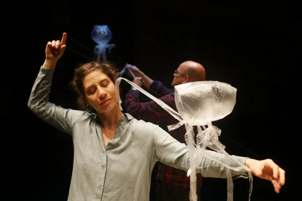 For the piece DUST, three internationally renowned companies explore the forms and languages of theatre. The German company Wilde & Vogel, founded in 1997 by Charlotte Wilde and Michael Vogel, develops a visual theatre of puppetry and live music. They are also co-founders of the Westflügel International Centre for Visual Theatre in Leipzig. The Nice-based company Golden Delicious, directed by multidisciplinary artist Inbal Yomtovian, works in the fields of theatre and performance, drawing narratives from all aspects of everyday life. Ari Teperberg, a director, dancer, and teacher based in the Netherlands, explores voice, silence, and forms of human communication in his artistic research.