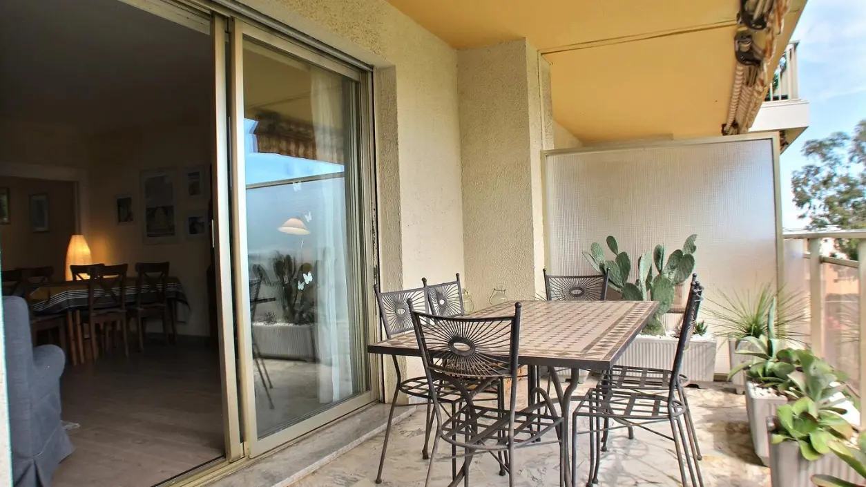 This 3-bedroom flat is situated in a calm residential area in Antibes and features seaview.