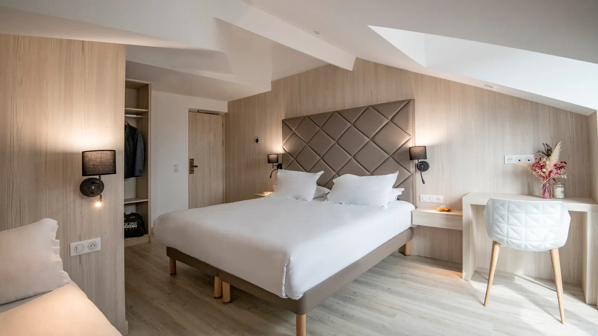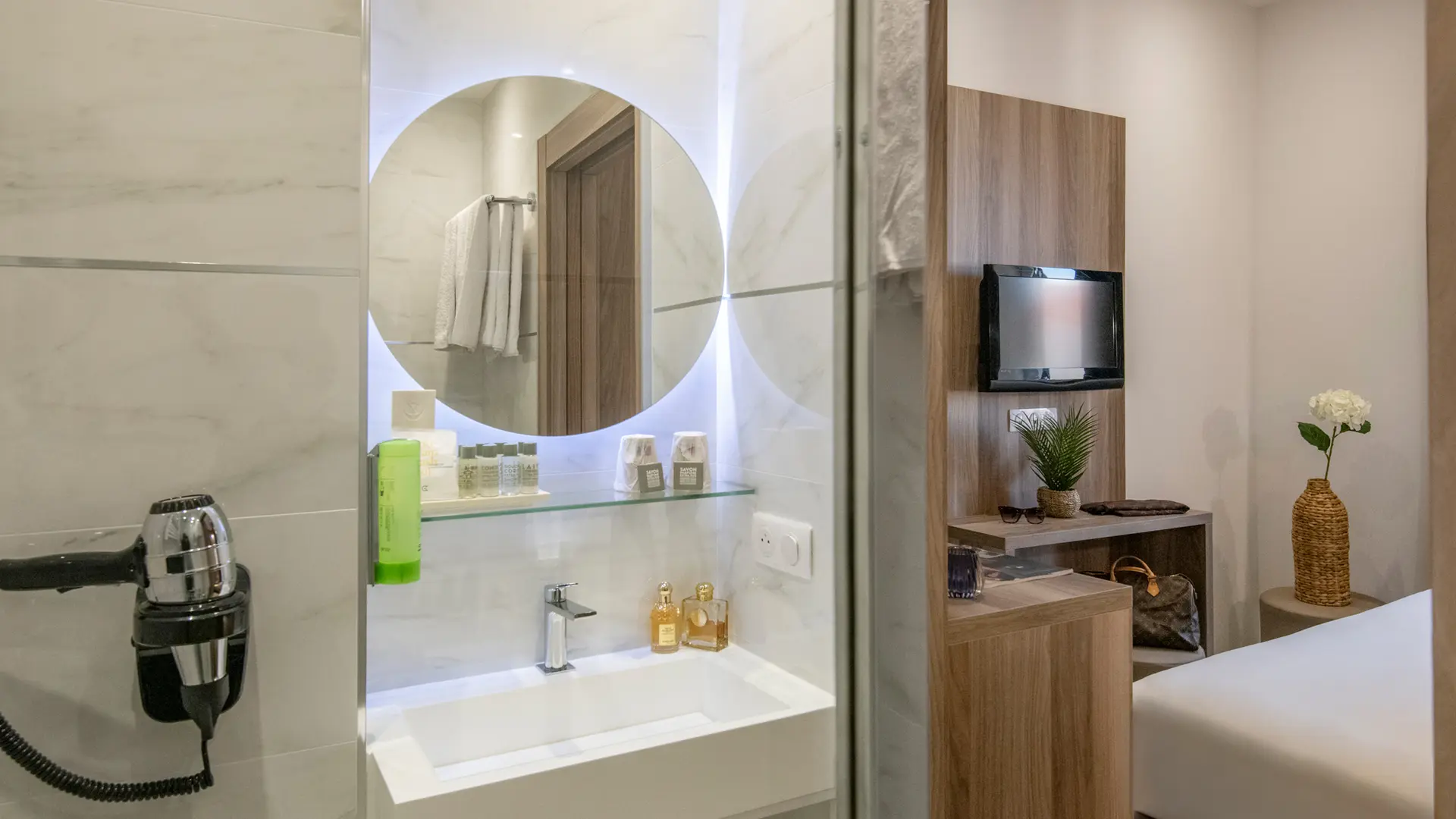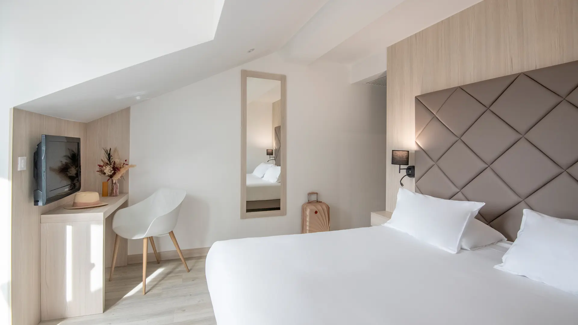 The Hotel de Paris Cannes will welcome you in a modern decor combined with old stones, in the heart of the city of Cannes, a 7 minute walk away from the private beaches of the famous Croisette. You will appreciate its large swimming pool of granit nestled in the heart of a luxuriant garden with Italian essences, the speed of the fiber optic Wifi network, its bar open 24 hours on 24 and its parking and closed and secured garage, with valet Service. The entire hotel team is at your disposal to ensure a successful stay. We guarantee the best price. Call us at the hotel!