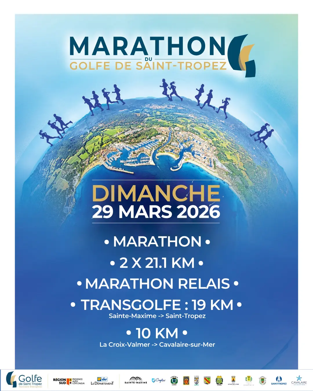 - Marathon Relay in teams of 4 (Sainte-Maxime > Gassin / Gassin > Saint-Tropez / Saint-Tropez > Ramatuelle / Ramatuelle > Cavalaire-sur-Mer)