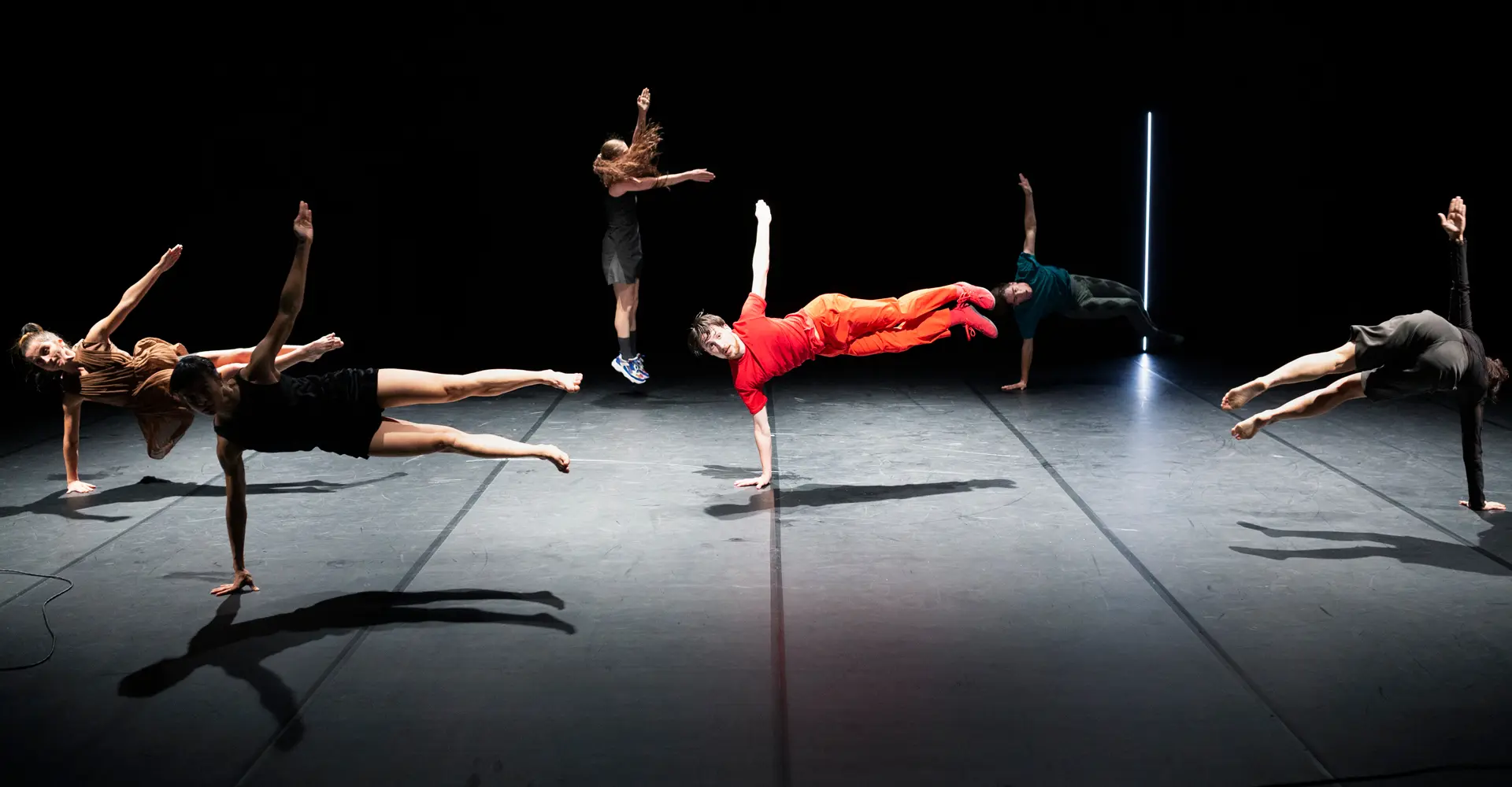 Bodies appear and disappear, multiplying combinations of movement, playing with algorithms... until chaos ensues. From situations interwoven with the unexpected, coincidences, and chance, an unexpected poetry emerges, sweeping us away on a fascinating journey into the heart of dance's magic.