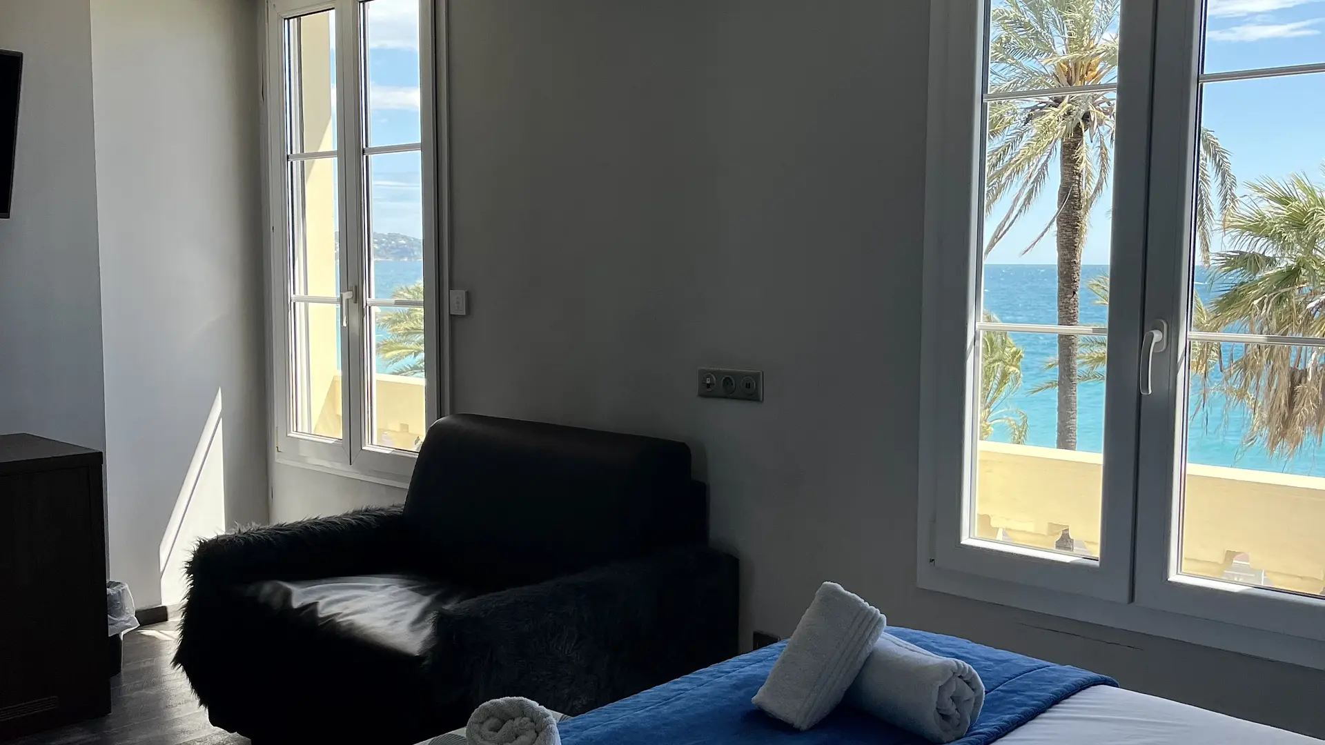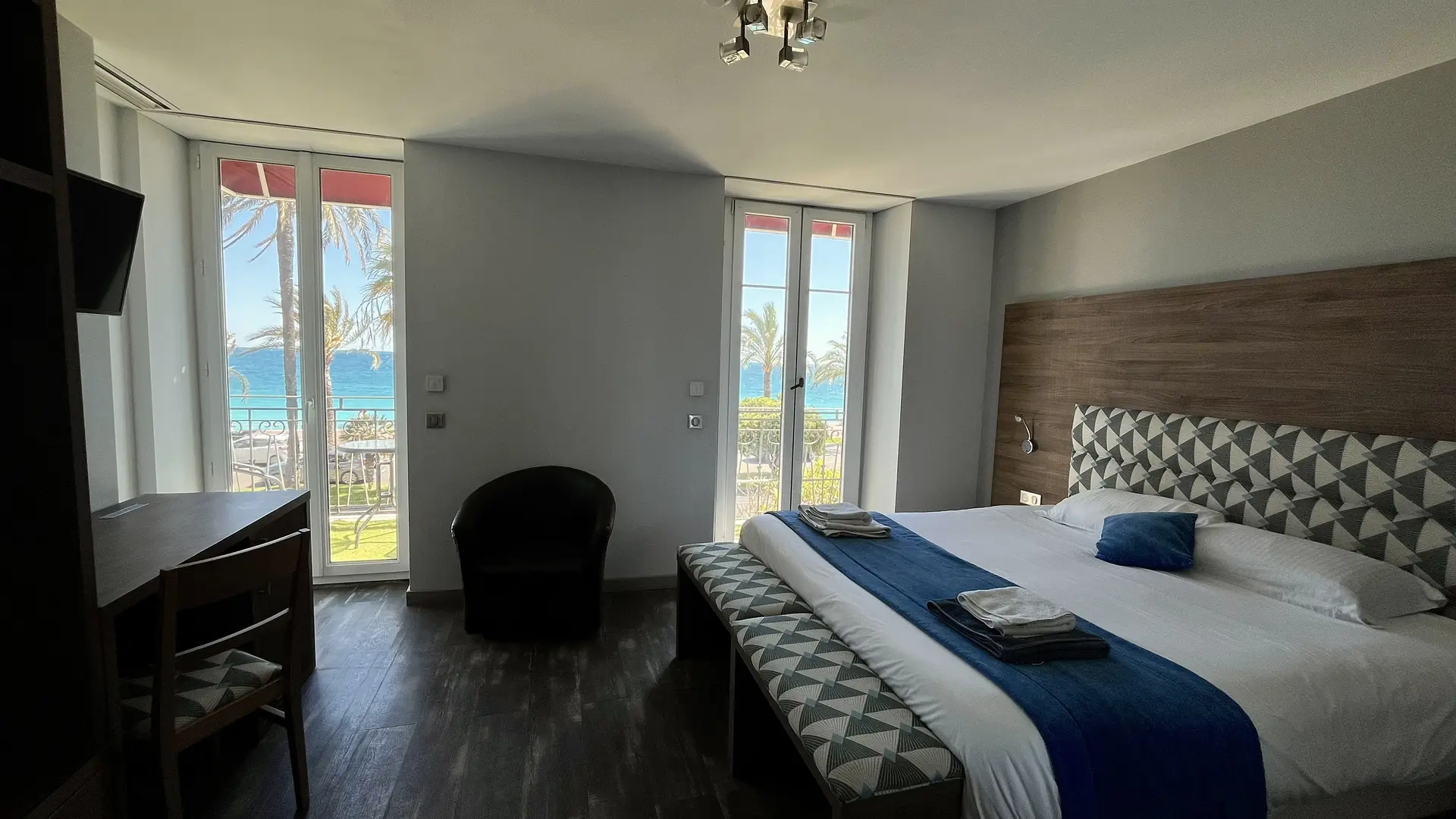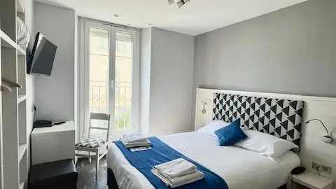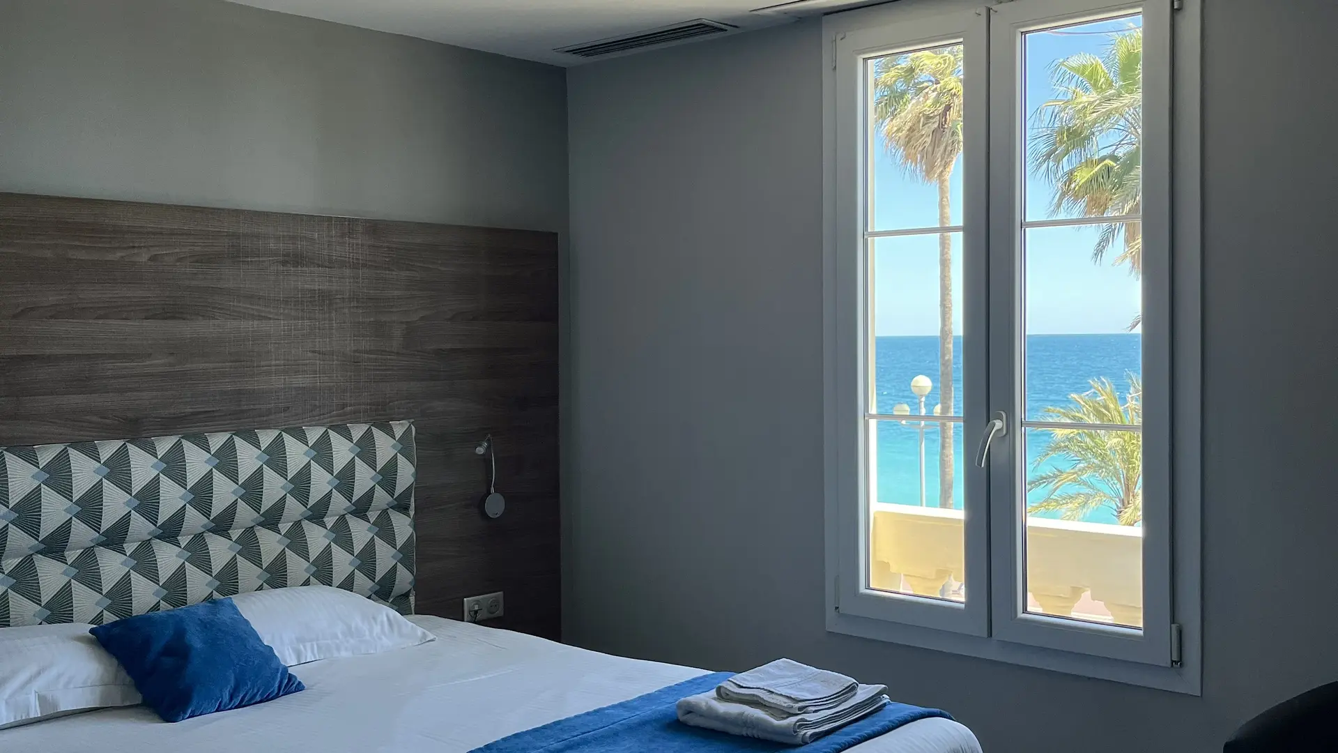 The Hôtel Flots d’Azur, located on the Promenade des Anglais, offers a privileged setting facing the Mediterranean.