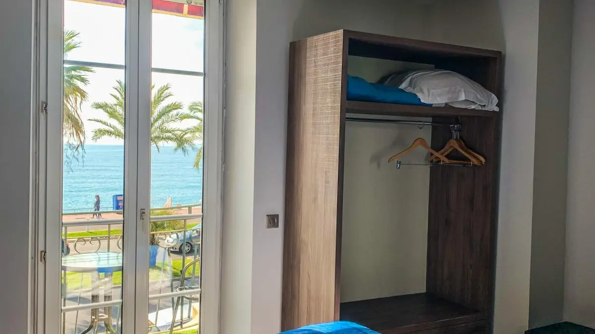 The Flots d'Azur hotel is located on the famous Promenade des Anglais, directly facing the Mediterranean Sea.