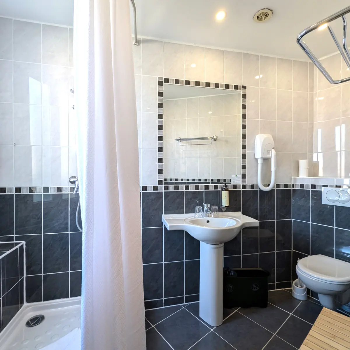 Our hotel is a 10-minute walk from the beaches, 15 minutes from Nice Ville train station, and a 40-minute tram ride from the airport.