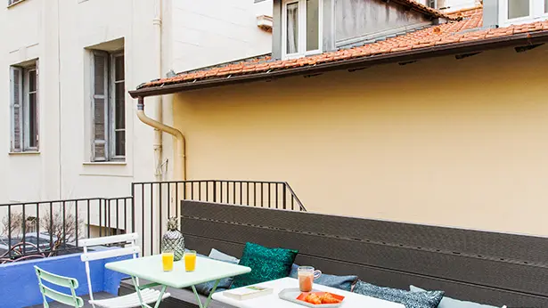 Located in Nice's "Carré d'Or" [Golden Square] this former townhouse has a favoured location which suits business travellers as well as lovers of urban escapes for a weekend, as well as families.