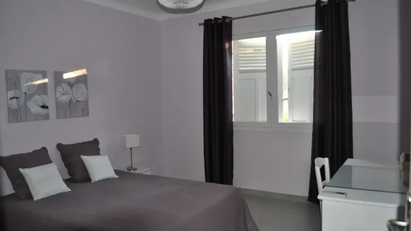 Three-bedroom apartment, "Mistral", 100 m2 (sleeps 6), south-facing, arranged as follows: entrance hall, kitchen with fully-equipped central island, air-conditioned lounge, 3 air-conditioned bedrooms, one on the south-facing side with a 160 cm bed, a second on the east-facing side with 2 0.90 cm beds and the 3rd at the rear of the villa with a 160 cm bed and private master suite (shower, washbasin, WC).