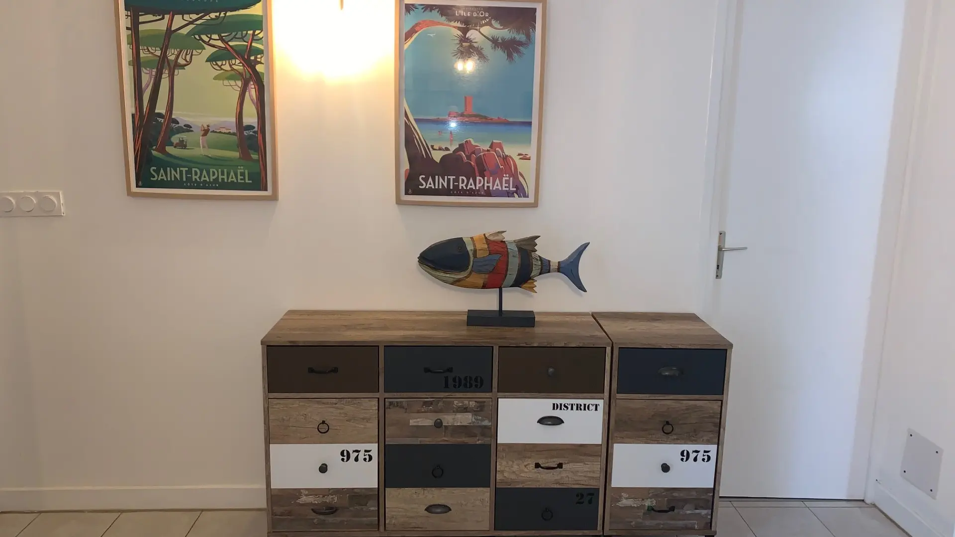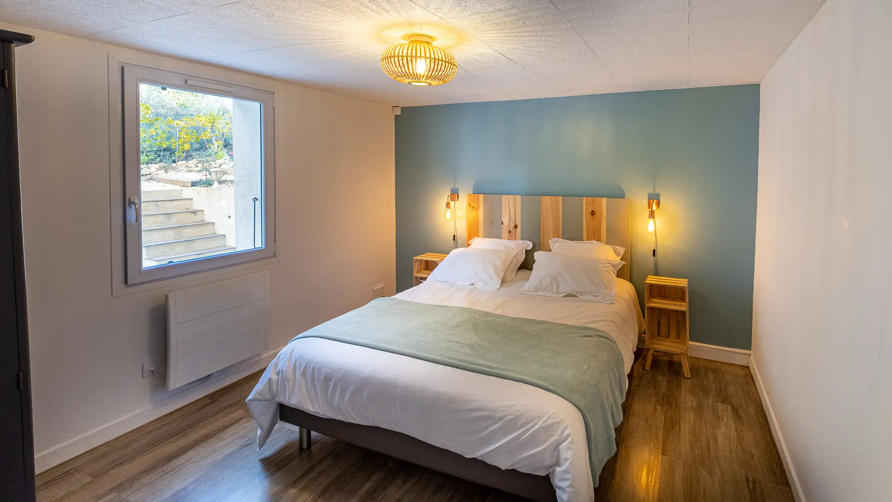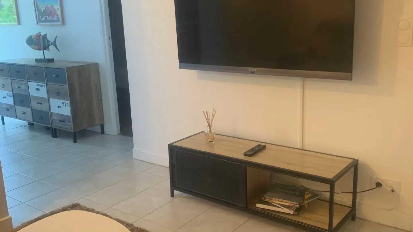 T2 ground-floor villa, 3-star rating, with separate entrance, terrace, garden with two deckchairs and garden furniture, fitted kitchen: washing machine, dishwasher, living room with large screen, free wifi, air-conditioning, shower room, bedroom with 160cm bed.