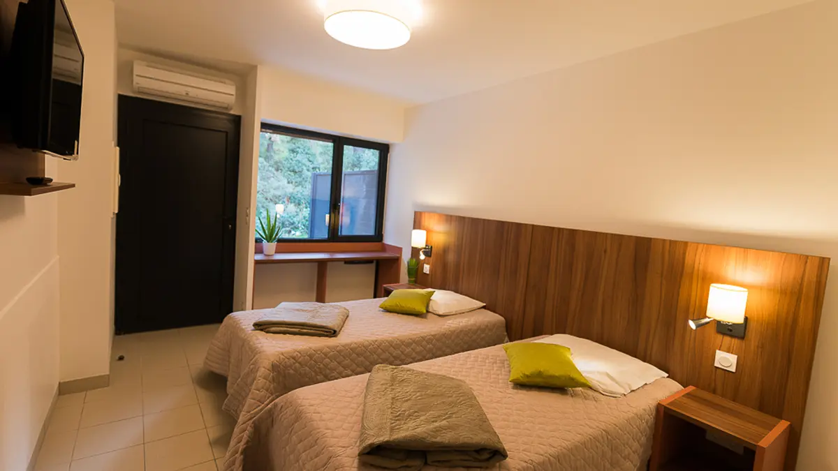 The prime location of our holiday center allows our guests to enjoy the advantages of a seaside resort as well as its setting in the middle of nature. It is open year-round, and it welcomes adults and children, holiday groups, but also individuals. Outside of the school holiday periods, we also welcome school trips (seaside or nature field trips). Our Haut Peyron center provides our guests with a self-service restaurant including a restaurant room and 2 terraces for outdoor meals. Our 200 sq. m. modular multi-purpose room, can be divided in half, it is perfect to organize meeting, weddings, or trade shows. The 4 equipped meeting rooms can accommodate 30 to 40 people, who can also be accommodated for the duration of their seminar. Our bar and its lounge is a great place to relax and mingle. The outdoor amenities include a swimming pool and decks, a kids’ pool and a pétanque field.