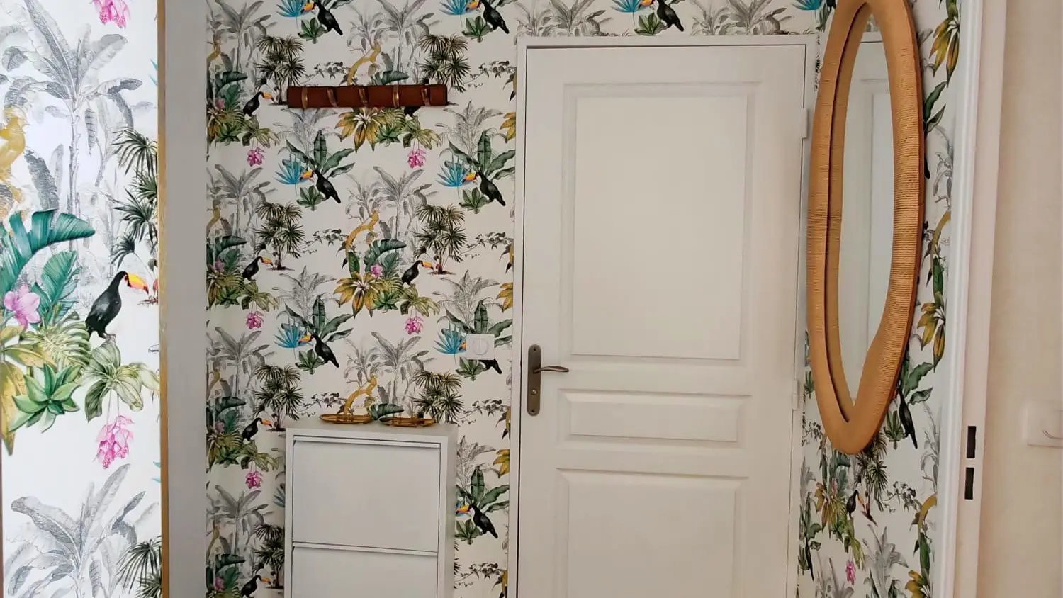In the entrance hall, you'll be charmed by its tasteful decor with tropical touches and a spacious storage closet with an integrated washing machine.