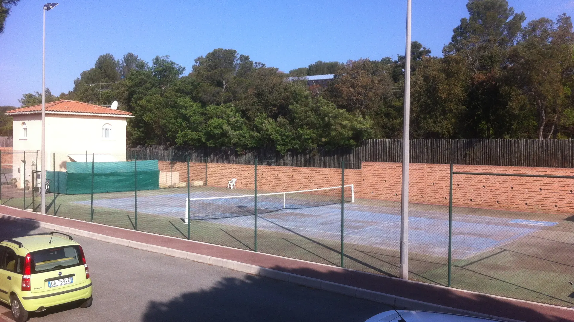 Secure 3-hectare estate with 2 swimming pools, 2 tennis courts and small gym (included in the rental price). Located 50 m from the beach.