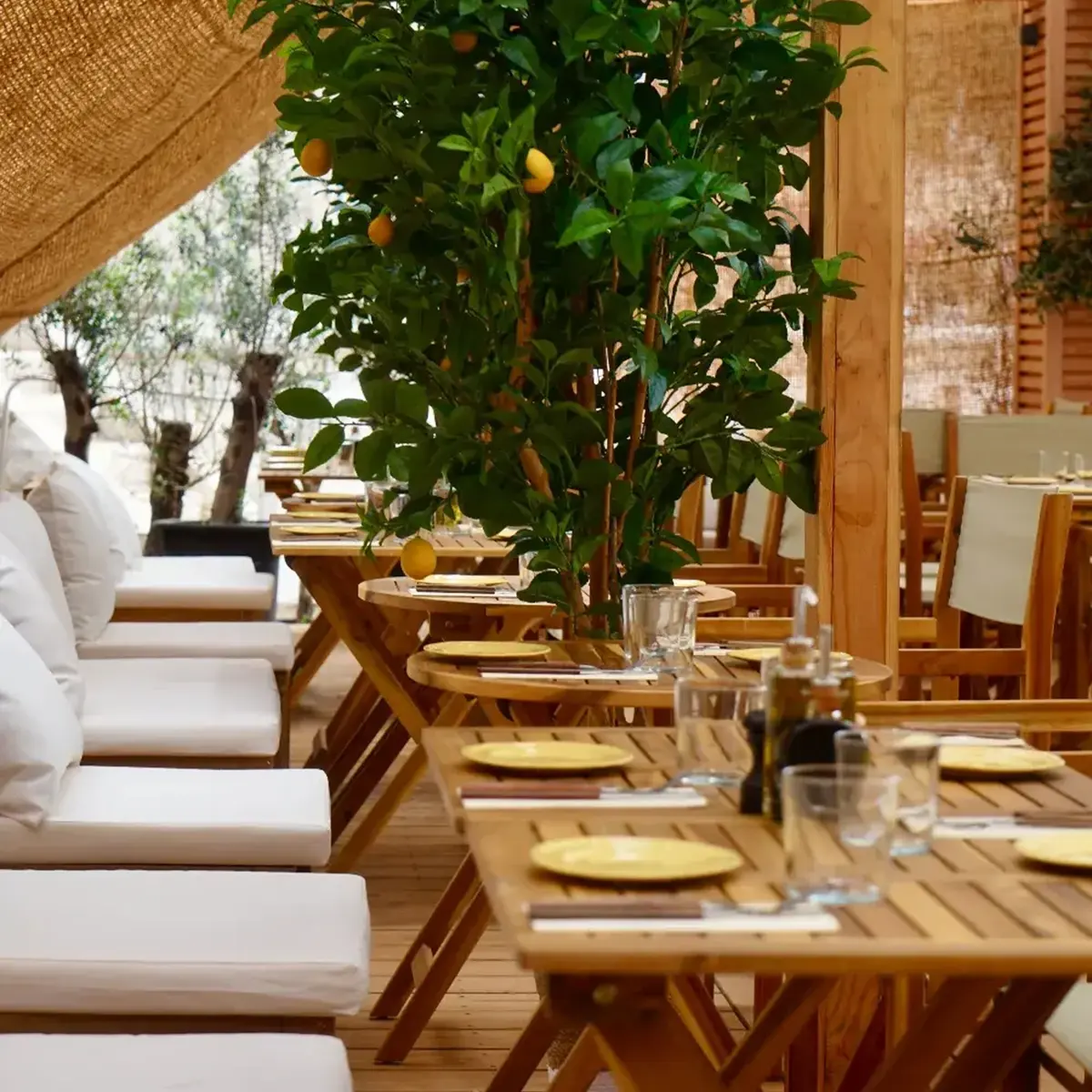 One of the few sandy beaches on the coast, bathed in crystal-clear water, where you can savor generous Mediterranean cuisine.