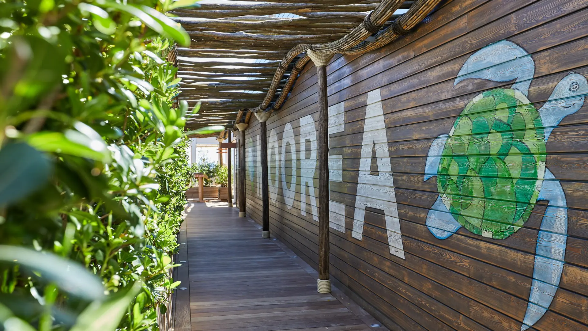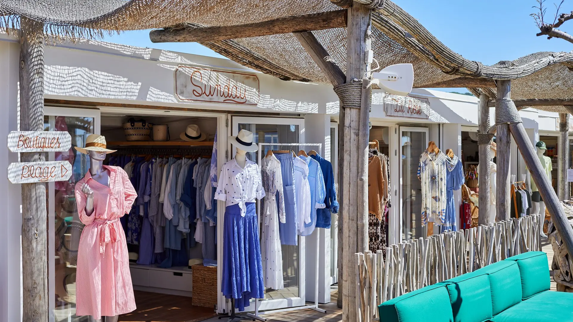 A little corner of paradise, a family beach with a chic decor under billowing sails.