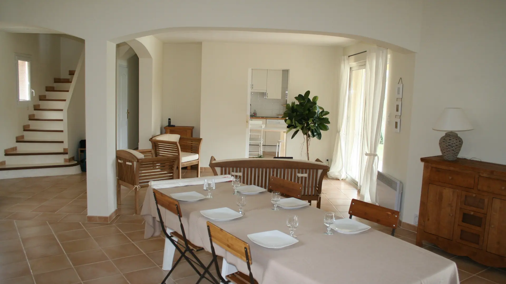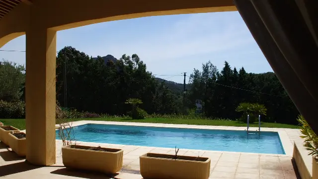 Pleasant villa ideally located next to the swimming pool, at the foot of the Estérel. A large 30 sq. m. covered terrace where you can have all your meals, or simply enjoy the wonderful view on the Estérel.