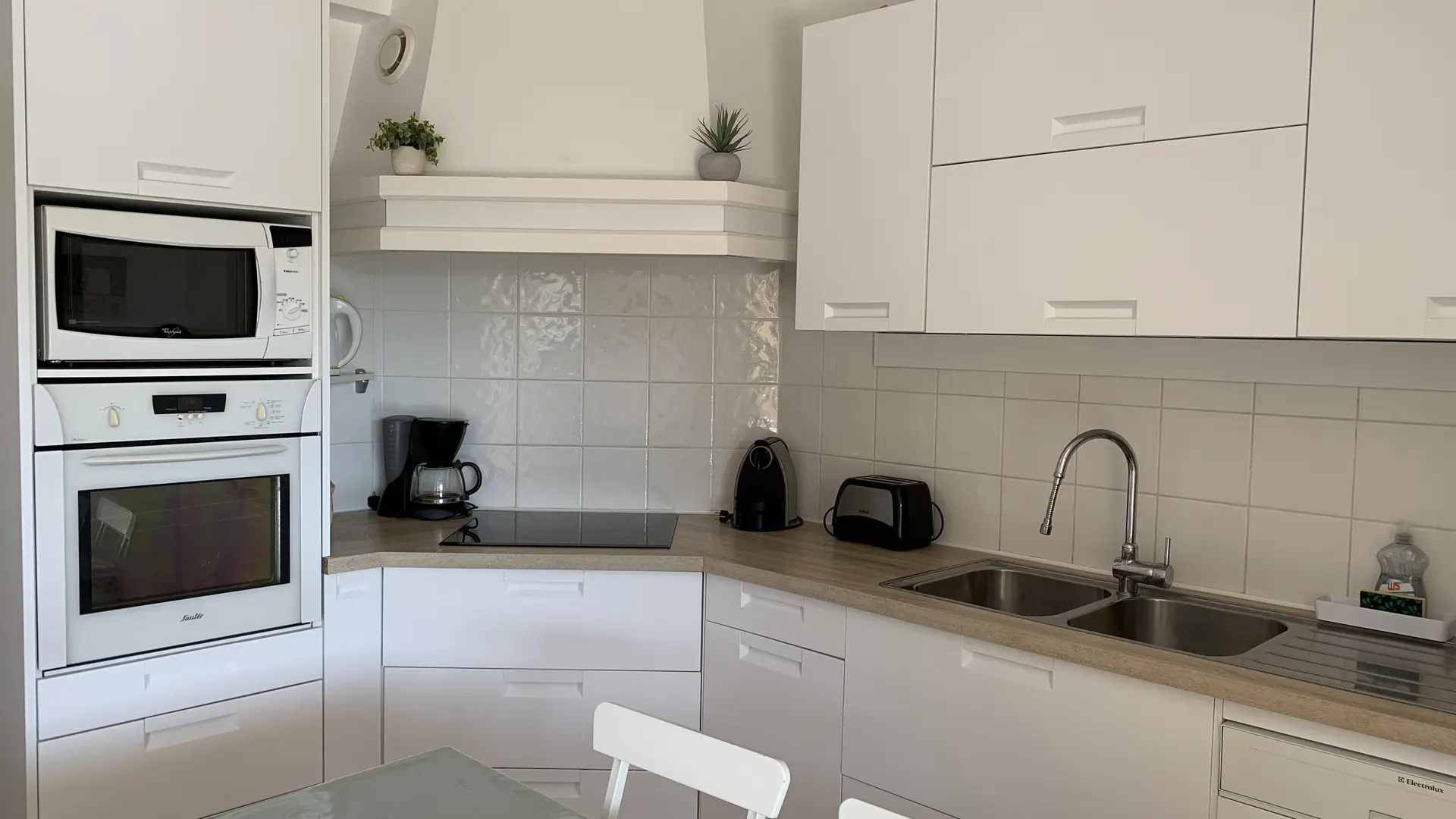 Large living room with bay windows along the terrace, well-equipped kitchen, 2 bathrooms,