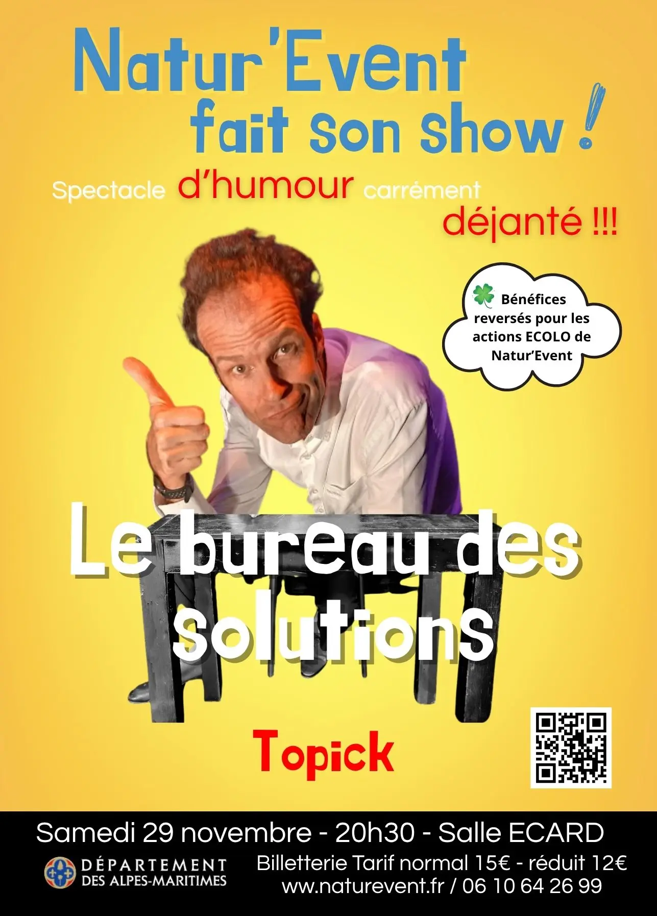 At the helm of a "start-up" that he's building right before our eyes, Topick offers simple and hilarious solutions to boost competitiveness. Topick expends incredible energy to save a ridiculous amount of time. The show combines the spirit of Charlie Chaplin in Modern Times, the uncontrolled antics of Gaston Lagaffe, and the caustic humor of Coluche. It's exhilarating for children and adults alike, from age 10 and up. Sophisticated, impactful, and spectacular humor is on the program!