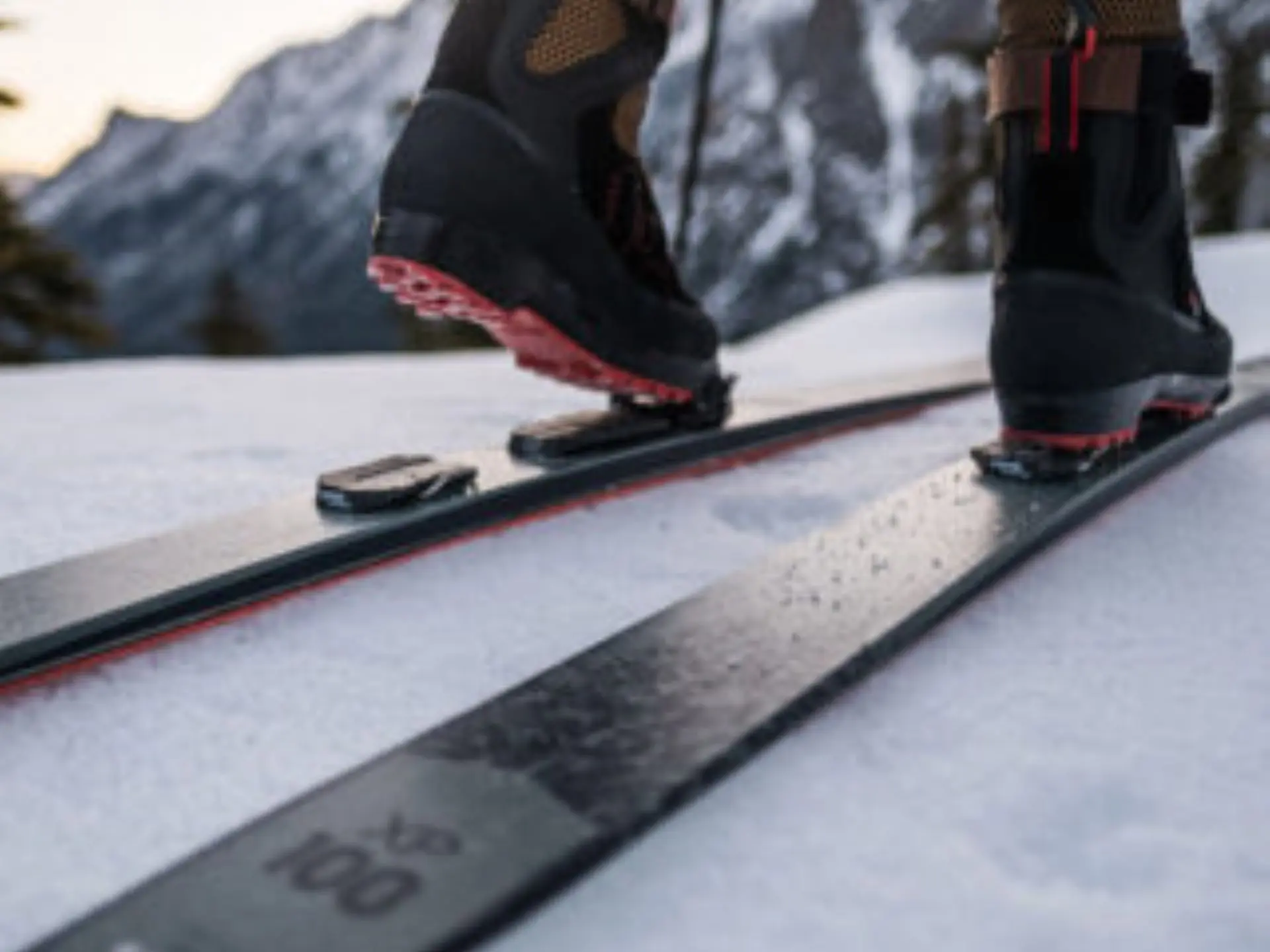 It is practised on hilly terrain, not necessarily on groomed trails. In addition, it does not require any specific technique as the heel is free at all times. The boots are taller and stiffer for better support. The skis are wider, lighter and have edges and an anti-recoil system permanently attached underneath.
