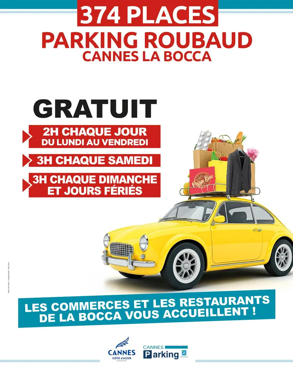 This parking lot, managed by CANNES Parking, is located near the La Bocca market.