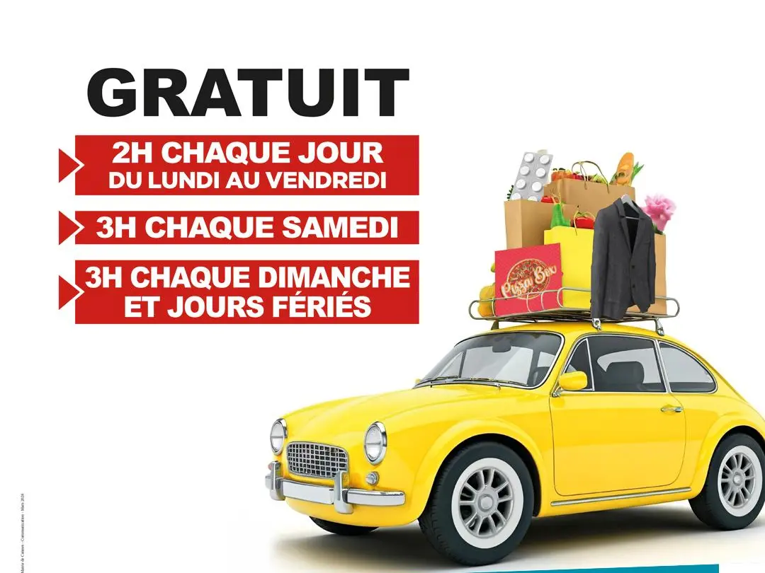 2 hours free every day from Monday to Friday + 3 hours free every Saturday + 3 hours free on Sundays + 3 hours free on public holidays.