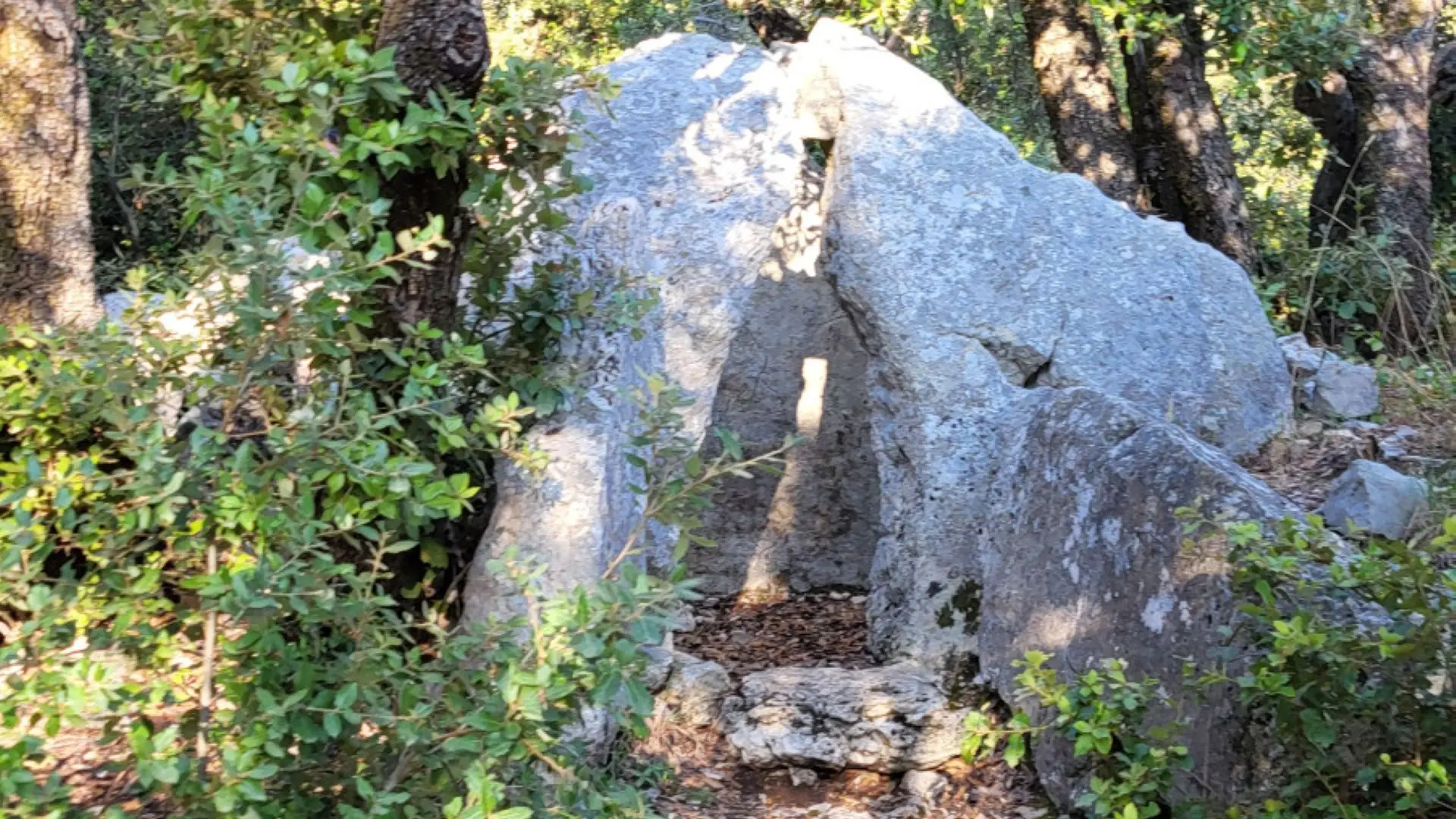 The Riens dolmen is set in the center of a tumulus and housed collective tombs.