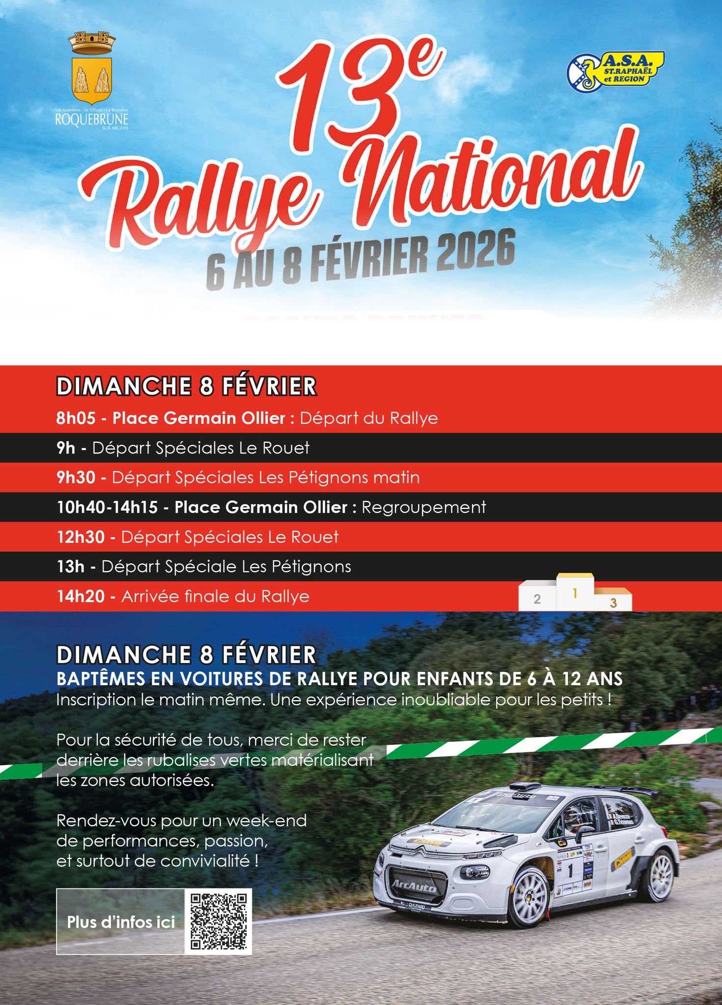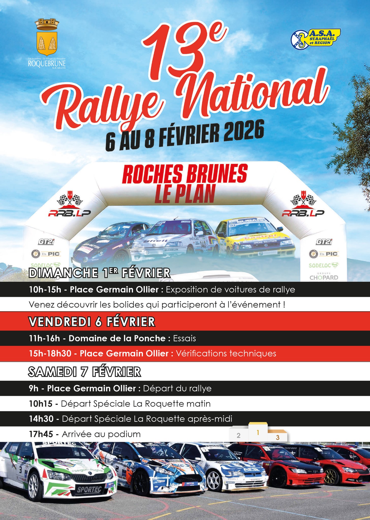 In this event, counting for the French Rally Cup, Moderns, VHC, VHRS and VMRS compete on the roads of Roquebrune-sur-Argens and the Plan de la Tour.