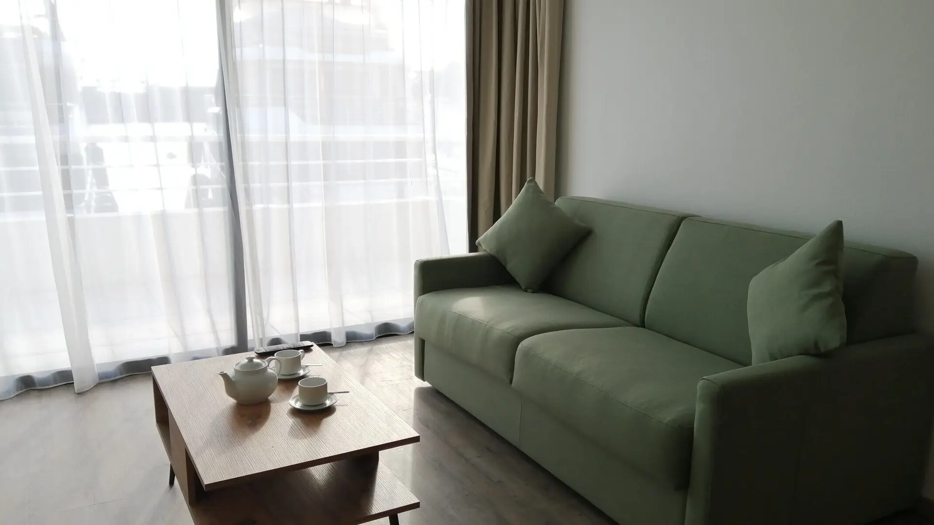 Each flat features a terrace with sea views, a flat-screen TV and a fully equipped kitchenette.