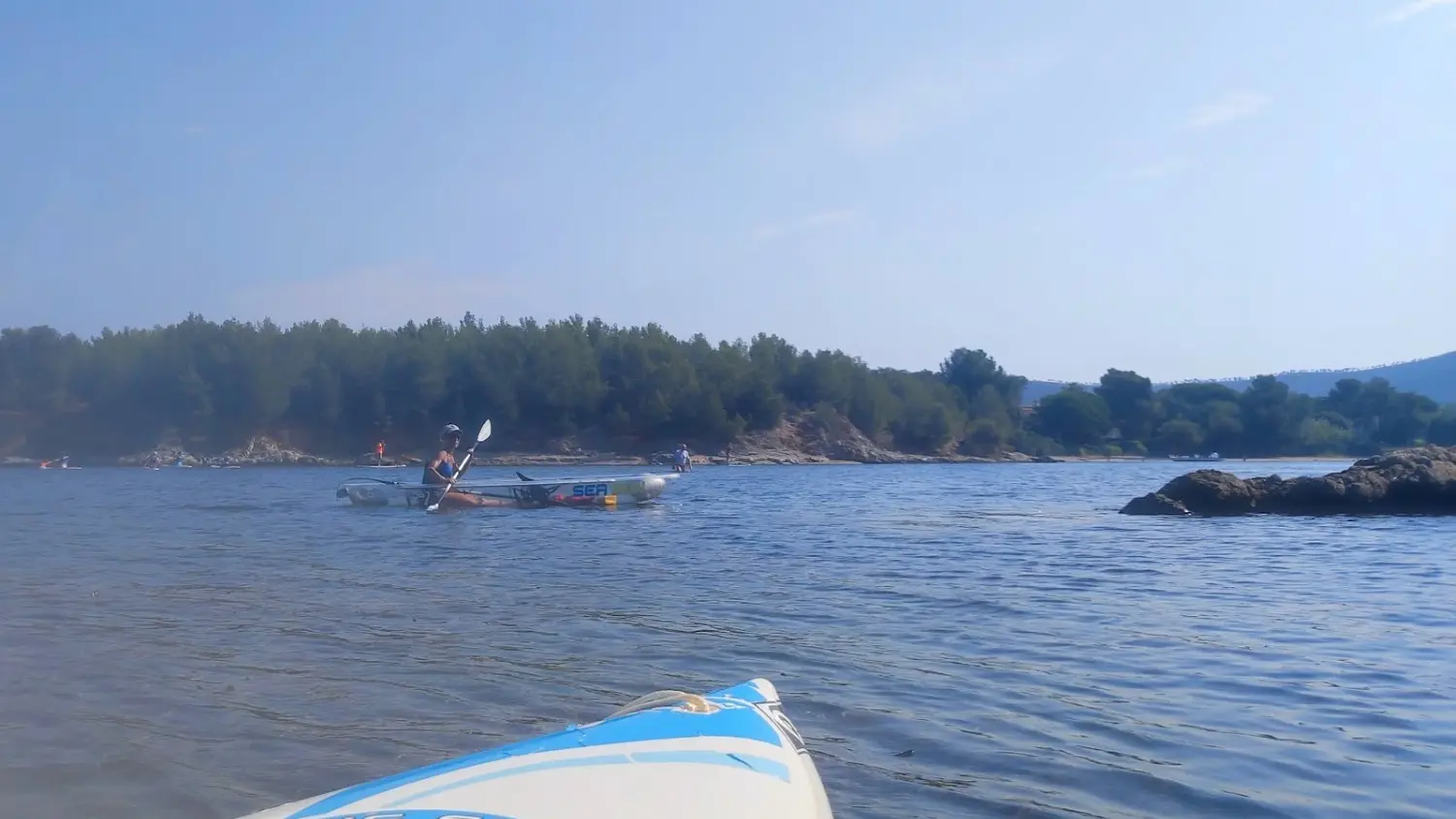 Choose the equipment to suit your needs: clear-bottomed sea kayak for 2 people (piece of bread recommended for fish), classic solo sea kayak with backrests or duo sea kayak with backrests (1 child up to 12 years old can sit in the middle), a sea kayak with pedals (for shoulder pain), 2 paddle steppers (weighing less than 90 kgs), stand up paddle.