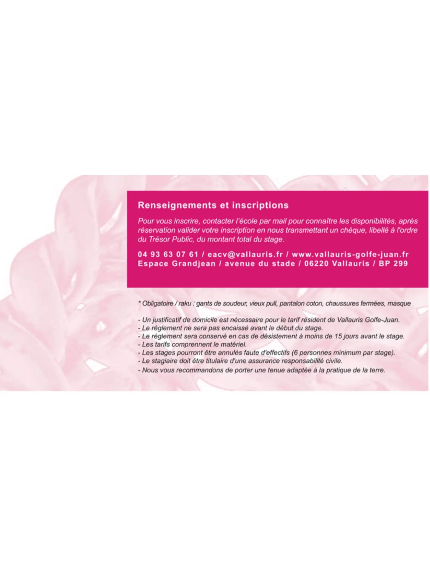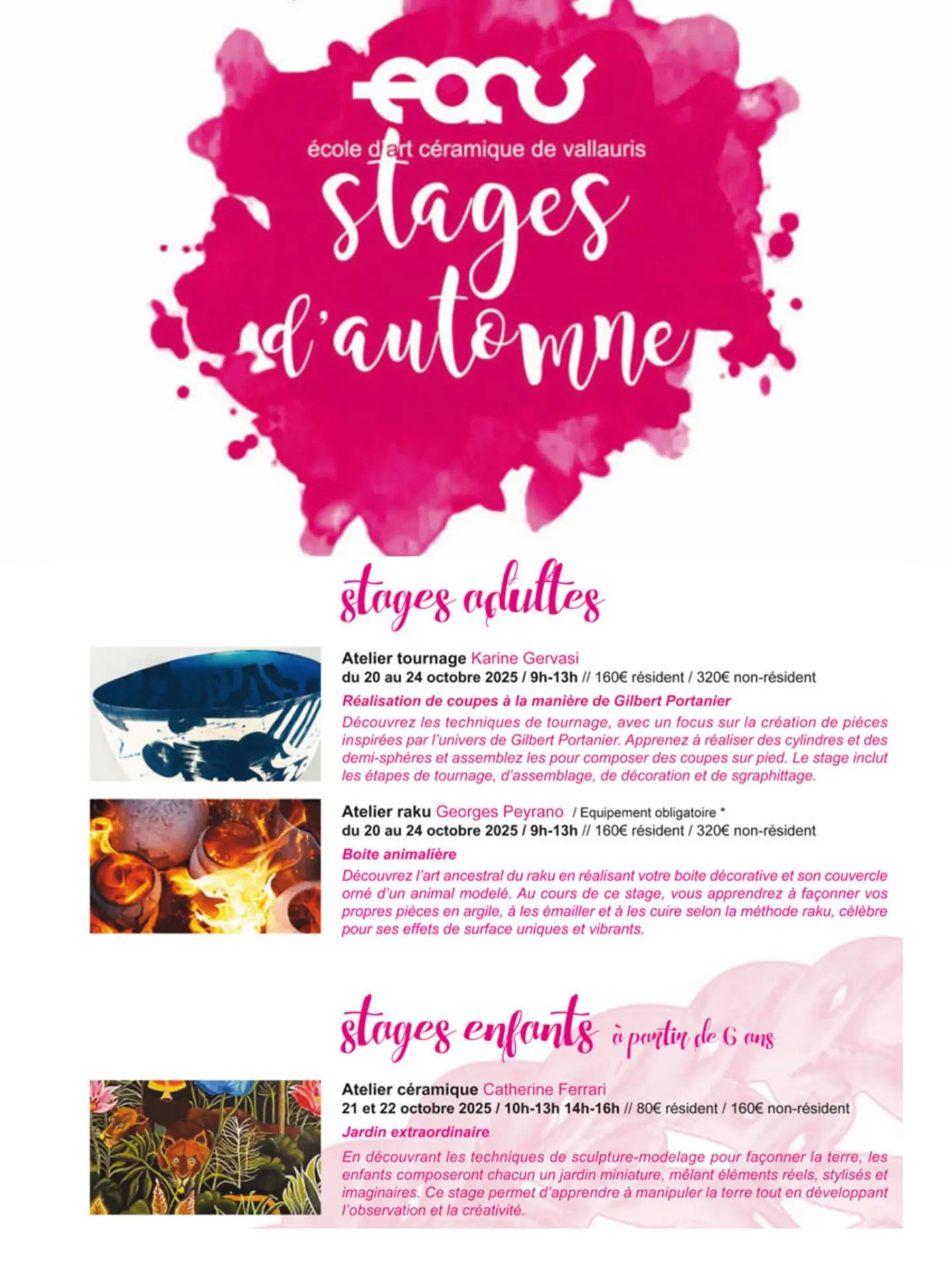 Autumn workshops for adults at the Vallauris Ceramic Art School.