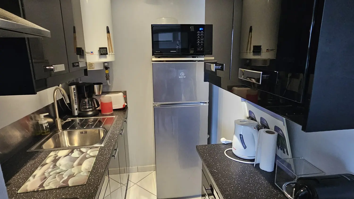 Equipped kitchen (induction hob, coffee machine and Nespresso coffee machine, grill, kettle, fridge/freezer, multifunctional micro o.)