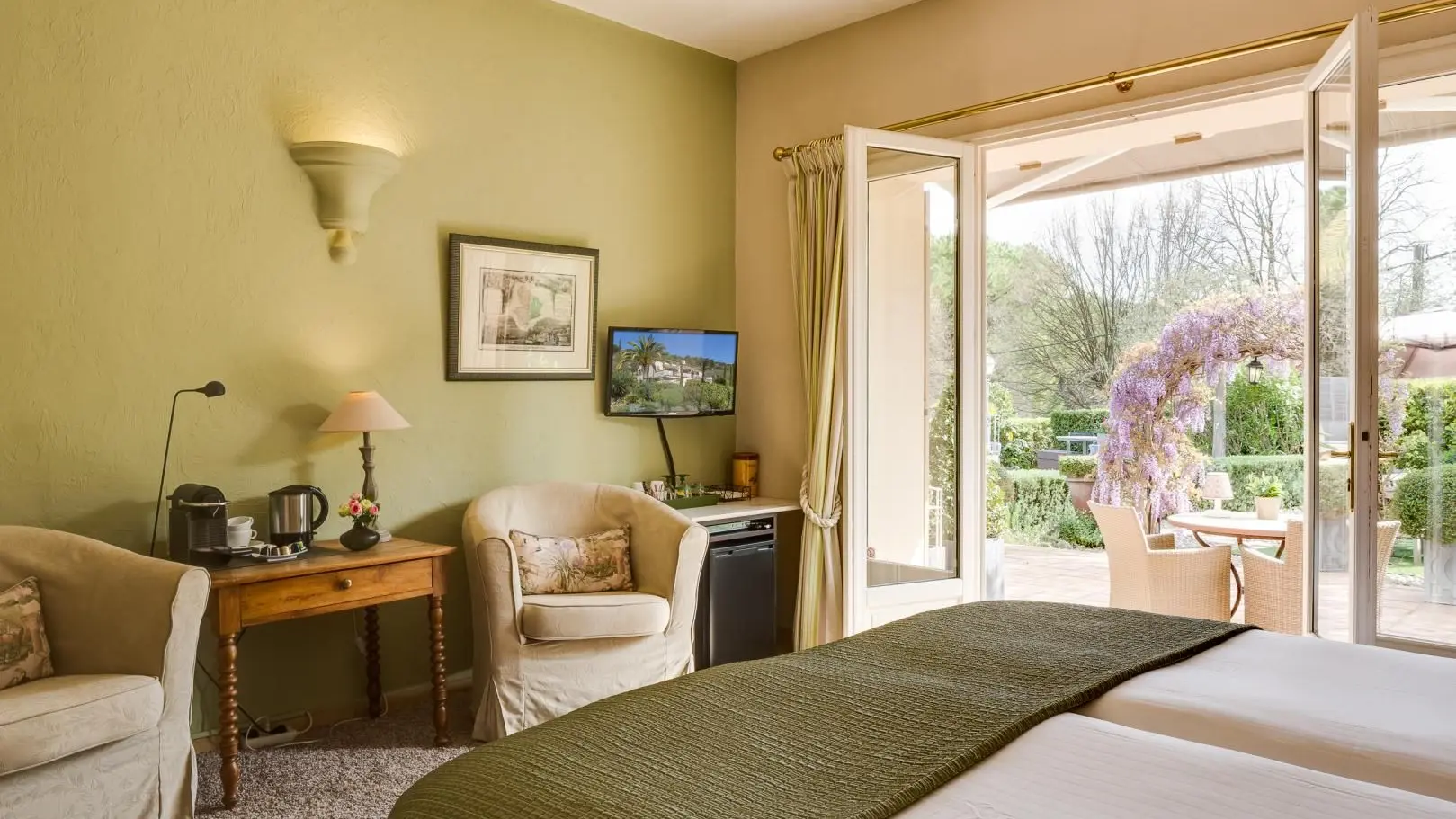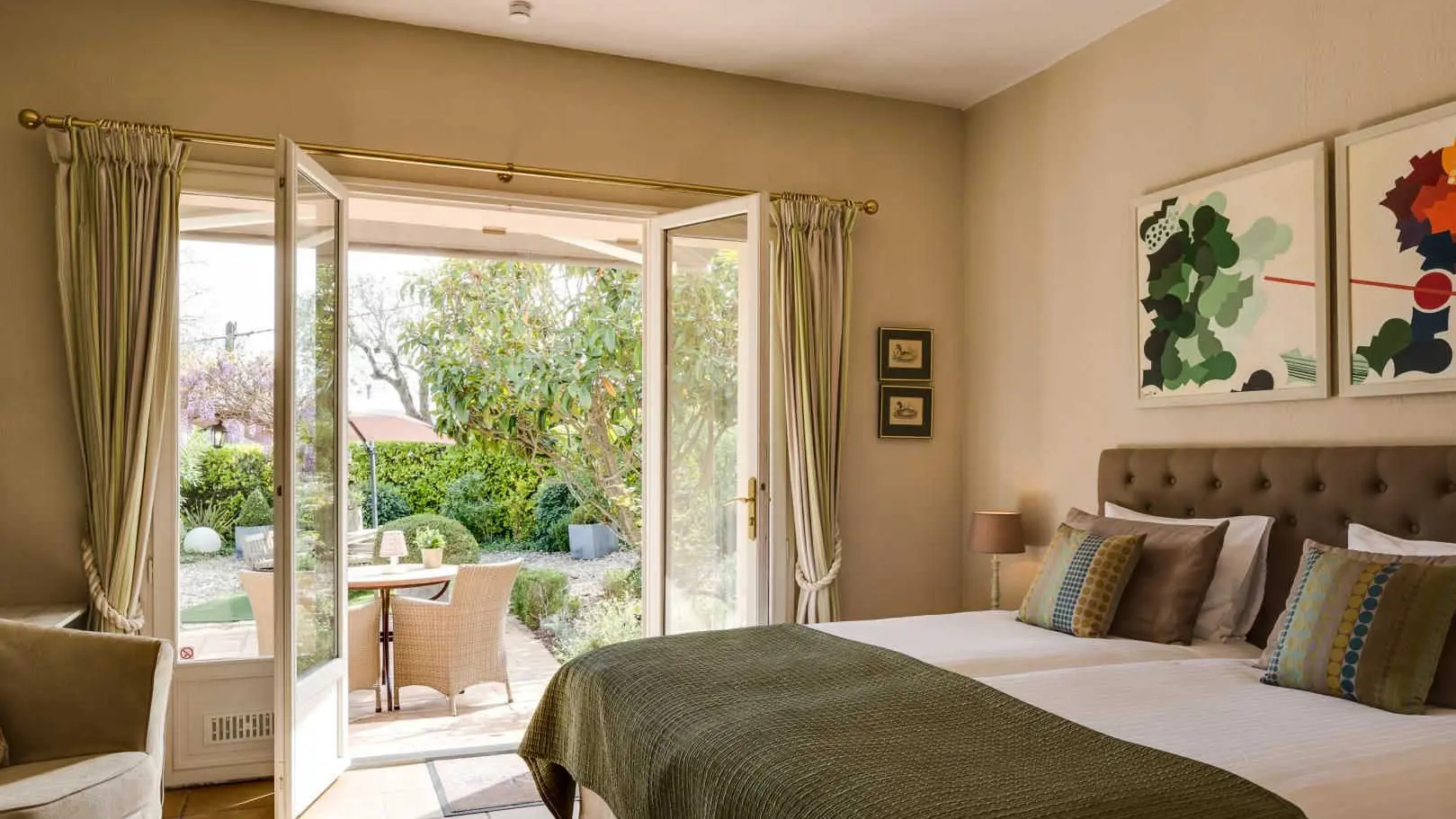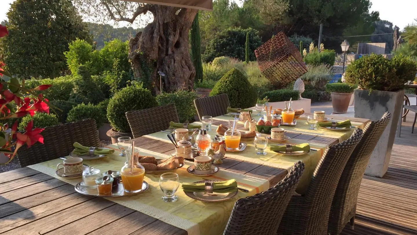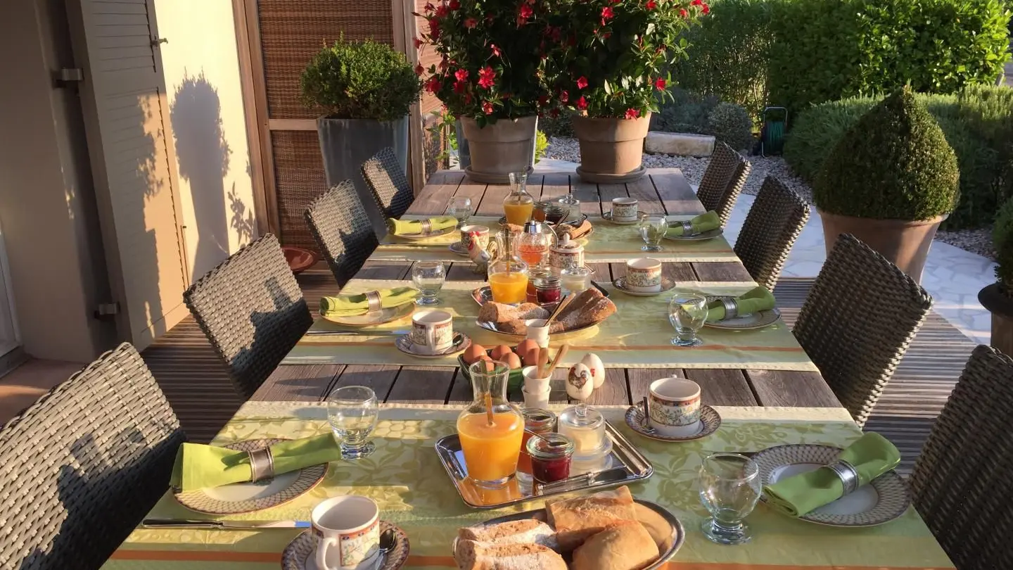 3 bedrooms on garden-side ground level of owners' house. Private terrace for each bedroom. Dining room shared by guests. Garden & terrace (garden furniture). Swimming pool. Bowls game area. Central heating. Parking on property.