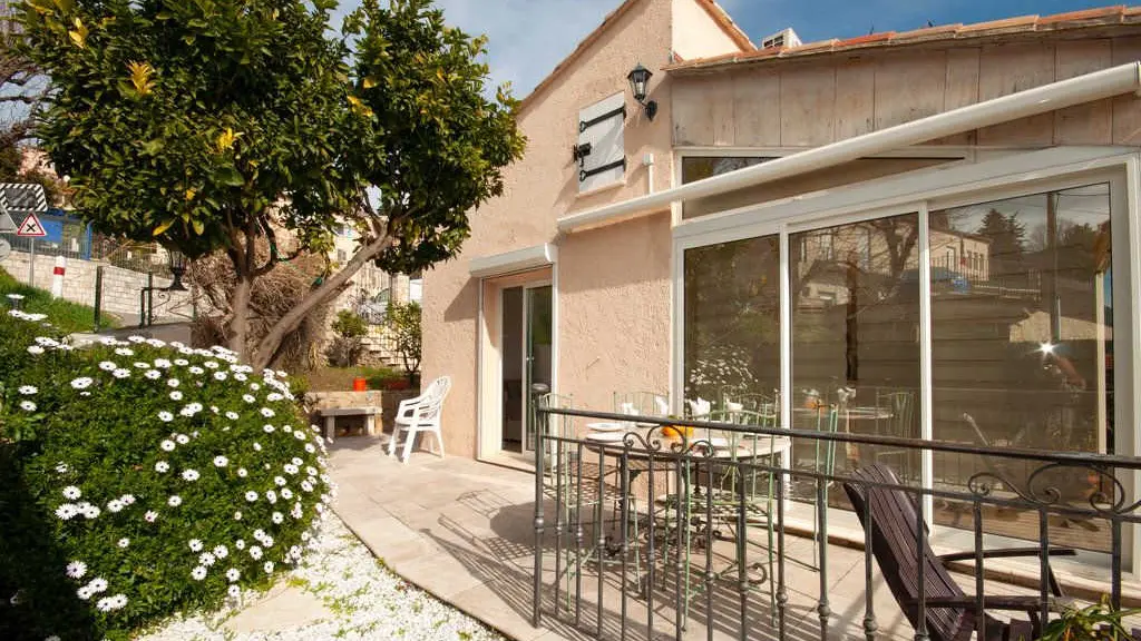Fully independent house with furnished terraces located a stone's throw from the village : Entrance to living room, dining area and lounge area with 1 sofa bed for 2 people (140x190). Fully equipped open kitchen. 2 Bedrooms each with 1 double bed (140x190). Shower room with WC. Private parking (2 spaces). Bus stop in front of the house. Including charges. Tourist tax extra. Rental of bed and bathroom linen as well as optional end-of-stay cleaning package.