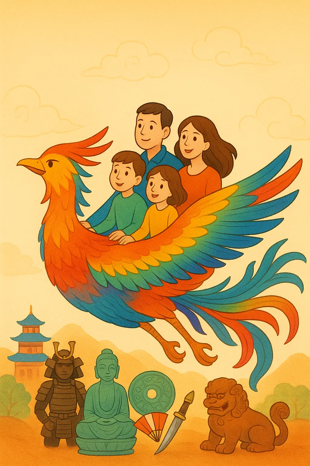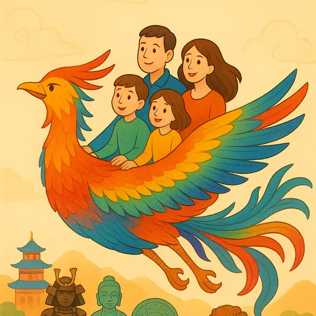 Come discover Asia and some of its iconic objects through this original tale. The narrator will take children on a journey on the back of a phoenix to explore Japan, China, Southeast Asia, and India!