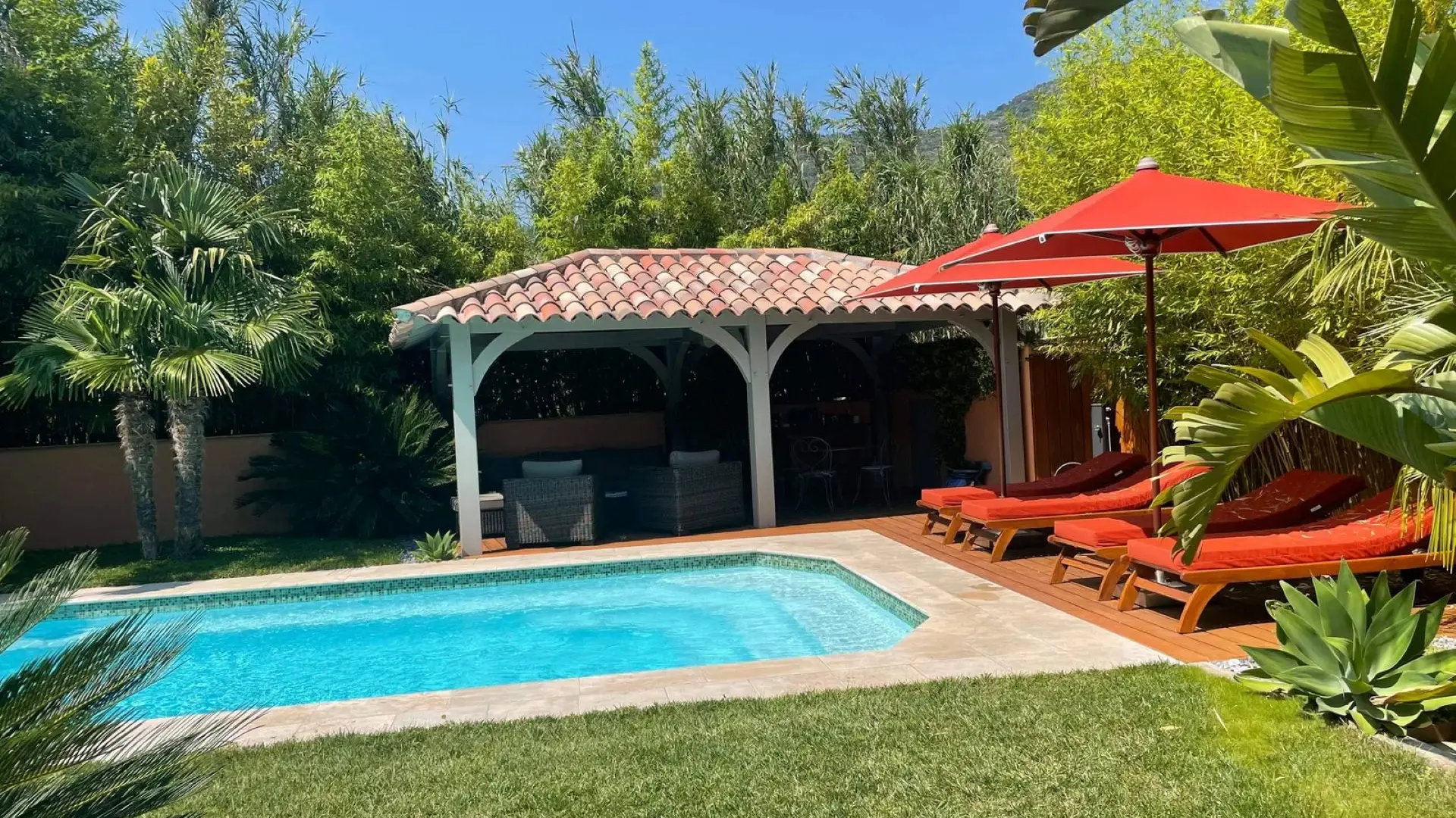 Just 1.4 km from Le Lavandou beach, these two suites with all the creature comforts, Italian-style shower, connected TV, terraces, swimming pool, and wifi access. Bicycles for our guests.