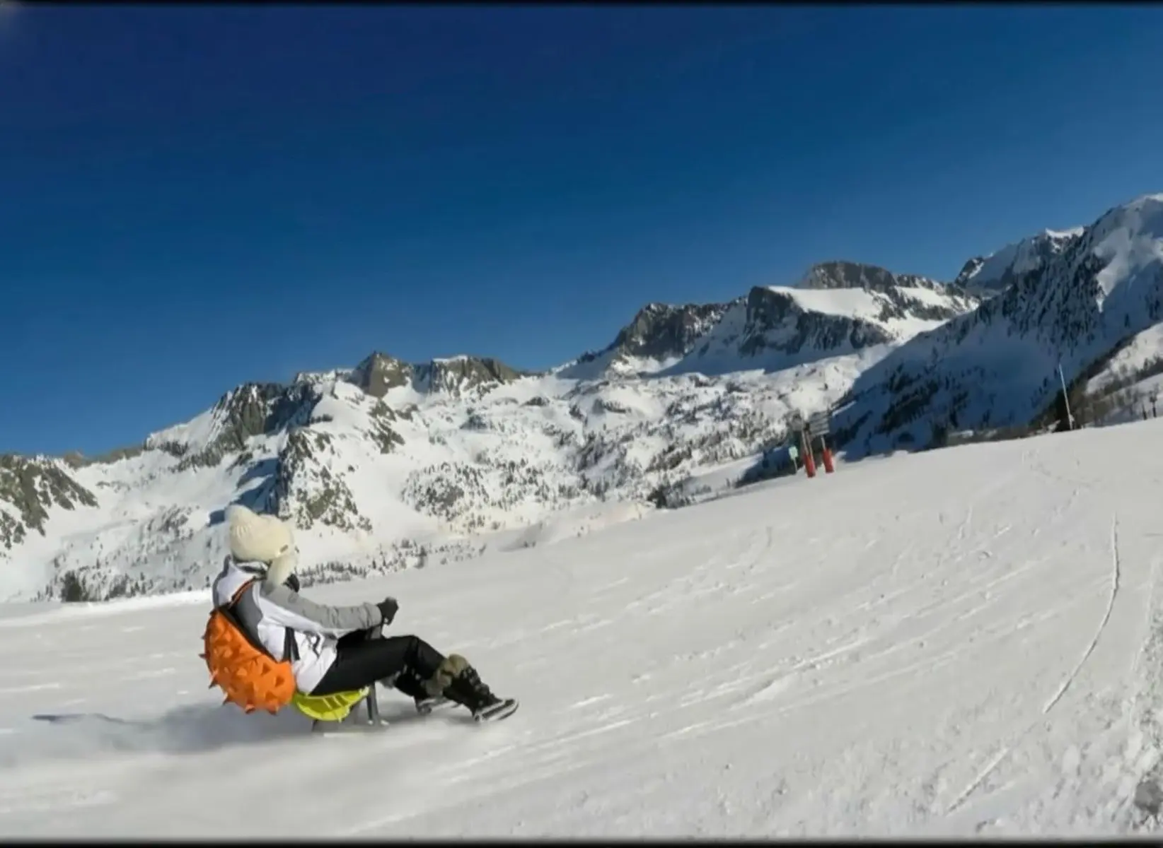 With a seat height of 20 cm above the ground, the Yooner is lightweight and easy to handle. It allows you to glide down the slopes without the need for traditional skis or a snowboard. You can explore the mountains in complete freedom.